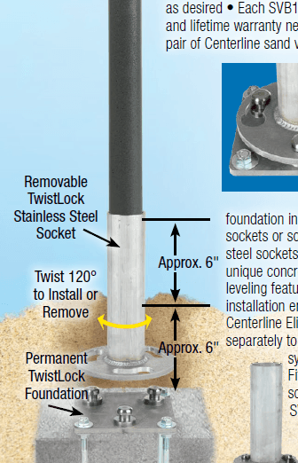 A: TwistLock sockets prevent sand and water from filling the sleeve, permit easy seasonal removal of posts, and maintain alignment for fast, safe installations.