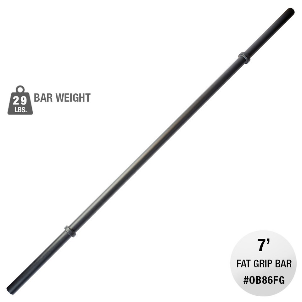 The Body-Solid Tools OB86FG Fat Grip Olympic Bar works like any other Olympic barbell but features a thick 2" grip diameter to help build grip strength and develop stronger and more muscular forearms in addition to the muscle groups targeted during regular barbell workouts.