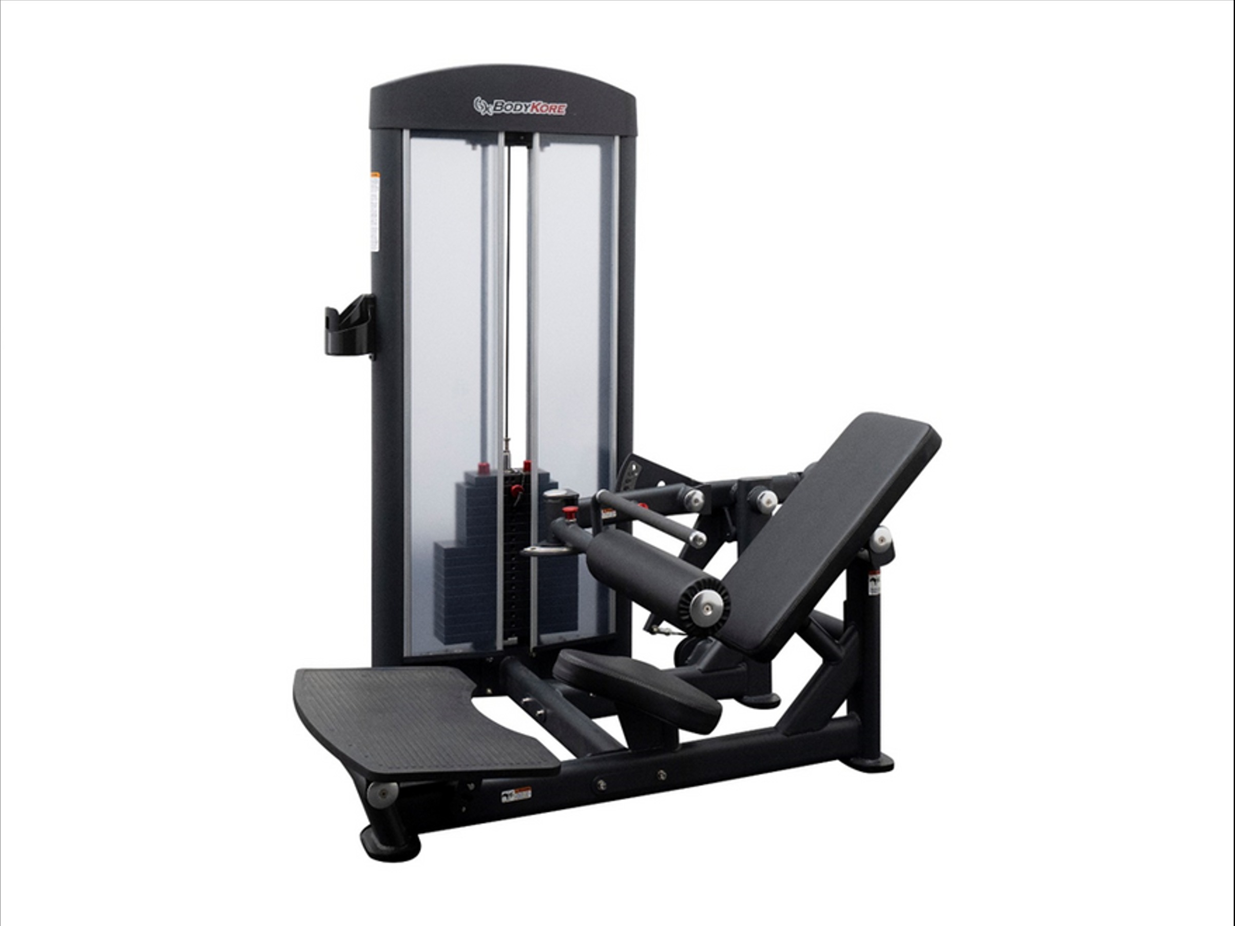 The BodyKore Selectorized hip thrust is a commercial glute building machine. The pivoting back pad allows the user to thrust their hips upwards and contract their glutes. The BodyKore hip thrust has a swinging lever arm that allows the user to easily get in and out of the seat. The stack weight is easily accessible from the seated position so the user can increase/decrease weights conveniently between reps. The machine comes with a 220lb weight stack that is upgradeable to 340lbs.