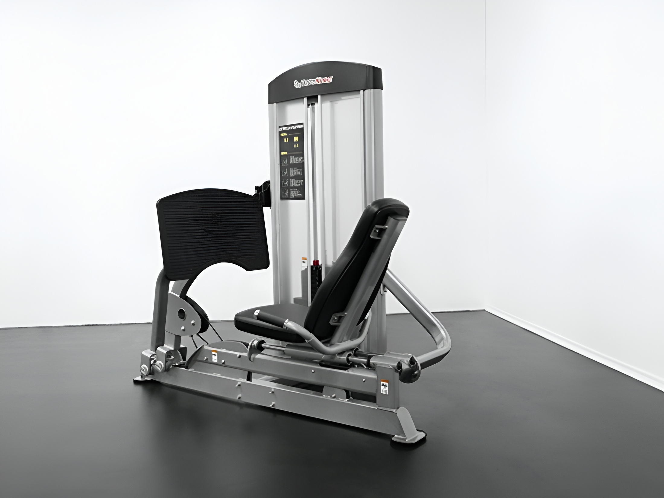 BodyKore Isolation Series Leg Press/Calf Extension is a selectorized leg press machine. The horizontal seated leg press is built with a hinged press plate that allows leg pressing and calf extensions done in the one motion. The machine is equipped with a 220lb weight stack. This machine is commercial grade and rated to hold over 1000lbs.