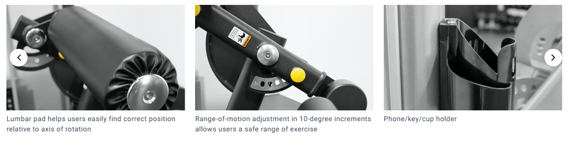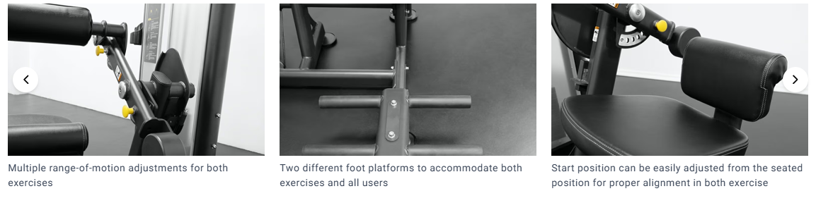 You get multiple range-of-motion settings for both exercises. ROM changes in 10-degree steps. That lets you keep reps smooth and avoid forcing deep end range, especially when you are new to the move or coming back after time off.