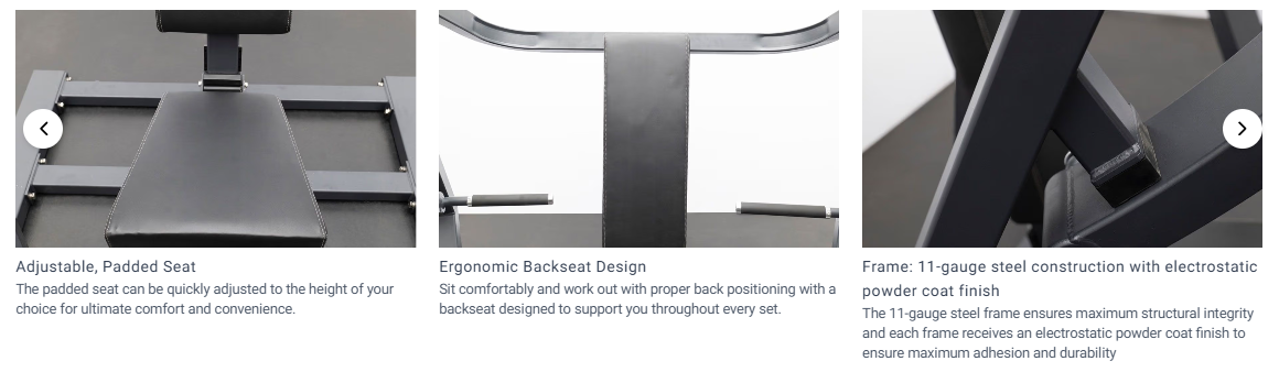 A press only works if the setup fits your body. The GR801 supports that with an adjustable padded seat, ergonomic back support, and heavy-duty foam grips that stay secure when hands get sweaty. The step-in design also makes entry and exit easier for all users, including rehab-focused clients.