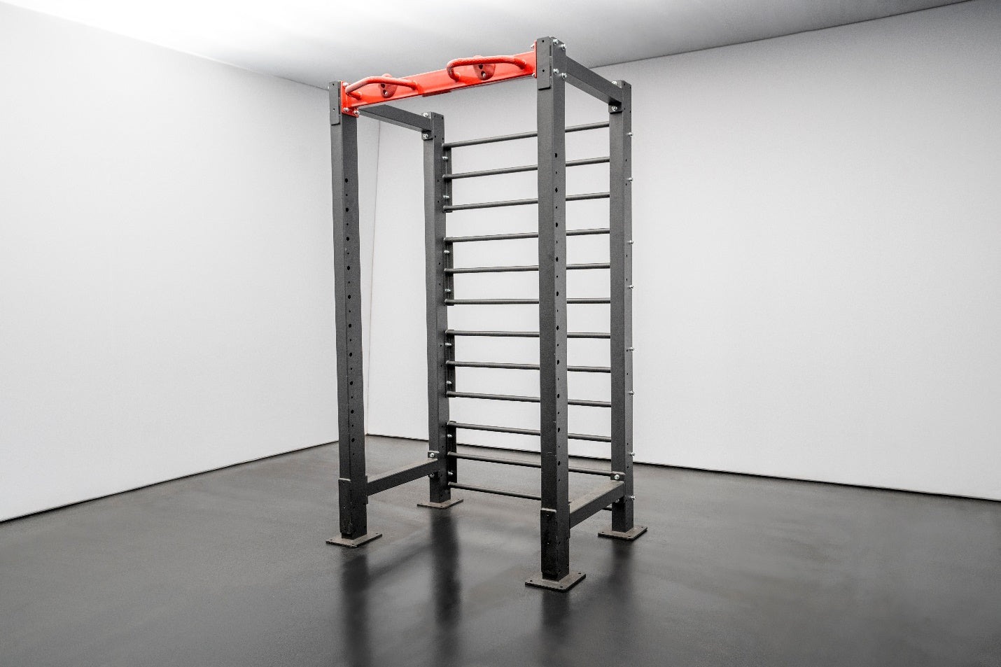 The BodyKore Linx Rack Single Bay is a space-efficient, customizable storage and training bay that attaches to the Full Linx Rack Modular System. It includes two base storage units with mounting channels for shelving height adjustments, three shelving trays, and an extended overhanging pull-up bar. It can be anchored to the floor or wall, and its smart vertical design delivers big organization in a footprint only 36” deep—ideal for garage gyms, basements, studios, and rehab spaces.