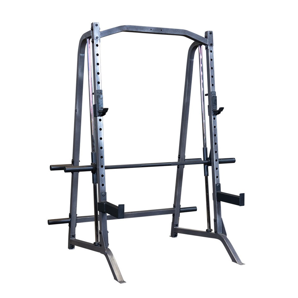The Powerline by Body-Solid PSM200 Smith Machine is perfect for users looking to take their home gyms to the next level.  The PSM200 Smith Machine offers the ultimate versatility and can be used as a free-weight half rack and a Smith Machine in one product. Set to a 7-degree reverse pitch, the PSM200 allows natural upper and lower body movements with biomechanically correct lifting paths.