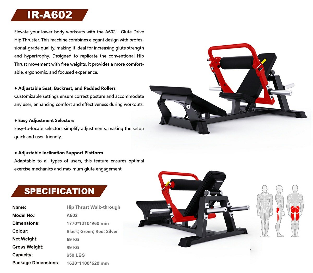 Handcrafted from premium materials and designed with precision engineering, this machine provides an unparalleled workout experience, giving you the ability to shape, sculpt, and strengthen your glutes like never before. Every component reflects a commitment to durability, comfort, and aesthetic appeal, designed specifically to cater to the needs of elite athletes and fitness enthusiasts.