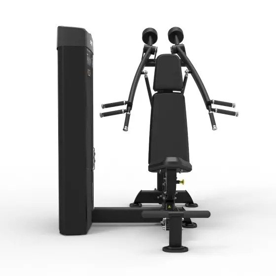 Commercial Chest/Shoulder Press CSD-CPSP Bilateral with converging axis pressing arm motion Seat and back pad adjust for proper pressing positions Premium beveled pads with sport stitching Multiple sets of grips for chest and shoulder pressing Integrated rep counter and built-in top cap storage